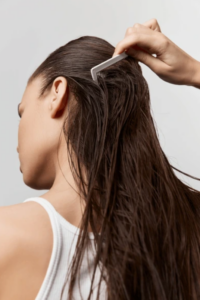 Adoptez un démêlage doux, idéalement avec un peigne à dents larges. Commencez toujours par les pointes avant de remonter progressivement. Pour une pousse cheveux saine, évitez également les coiffures trop serrées qui tirent sur les racines.